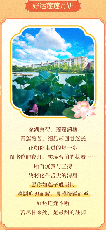 站在宿舍楼下抬头望,才发现江大的秋夜比想象中还要动人,晚风裹了甜甜的桂花香飘过来,小蠡湖的水波里晃着月色和路灯的光,连教学楼旁的石板路都像被镀了层银,猫学长也一路相伴,走着走着就打心底喜欢这儿了。西风弄晚,鱼初肥,蟹正美。我们宿舍约好一起去食堂西饼屋买苏式月饼,吃点苏式特色。还打算夜游小蠡湖,听说晚上湖边会有同学弹吉他。虽然没在家人身边,但和新室友一起凑着主意过节,比家里多了份热闹劲儿。还能听学长学姐讲往年江大中秋的灯谜会,一点都不觉得孤单,反而觉得这个中秋特别有纪念感,像是我大学生活的一个温暖开端。