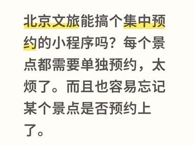 “十一”假期,北京旅游市场热度高涨,但各景区独立的预约系统也为游客带来了“幸福的烦恼”。针对假期有游客通过社交平台反映“景点预约多头管理、操作繁琐”的问题,北京市文化和旅游局相关负责人在回应北京日报客户端记者时透露,整合全市文旅资源的“统一在线预约平台”正在开发测试,将于近期正式上线。详情>>