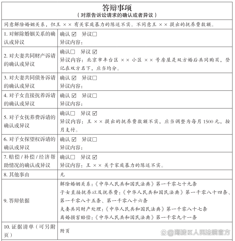 二、离婚纠纷如何答辩?示范性文本来帮您