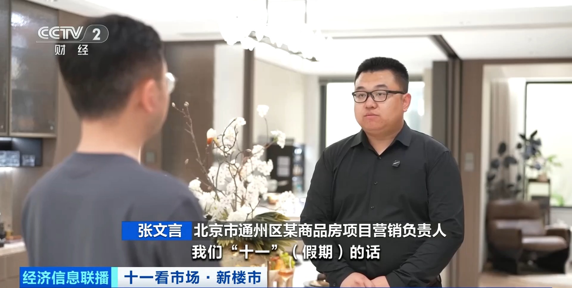北京市通州区某商品房项目营销负责人 张文言:我们持续有实景展示区的呈现,相当于是在全维度上面都可以给客户做到实景的呈现效果。“十一”假期,目前每天到访50到60组客户,随着客户从外地陆续返京,整体的到访量跟成交量可能还会有进一步的上升。