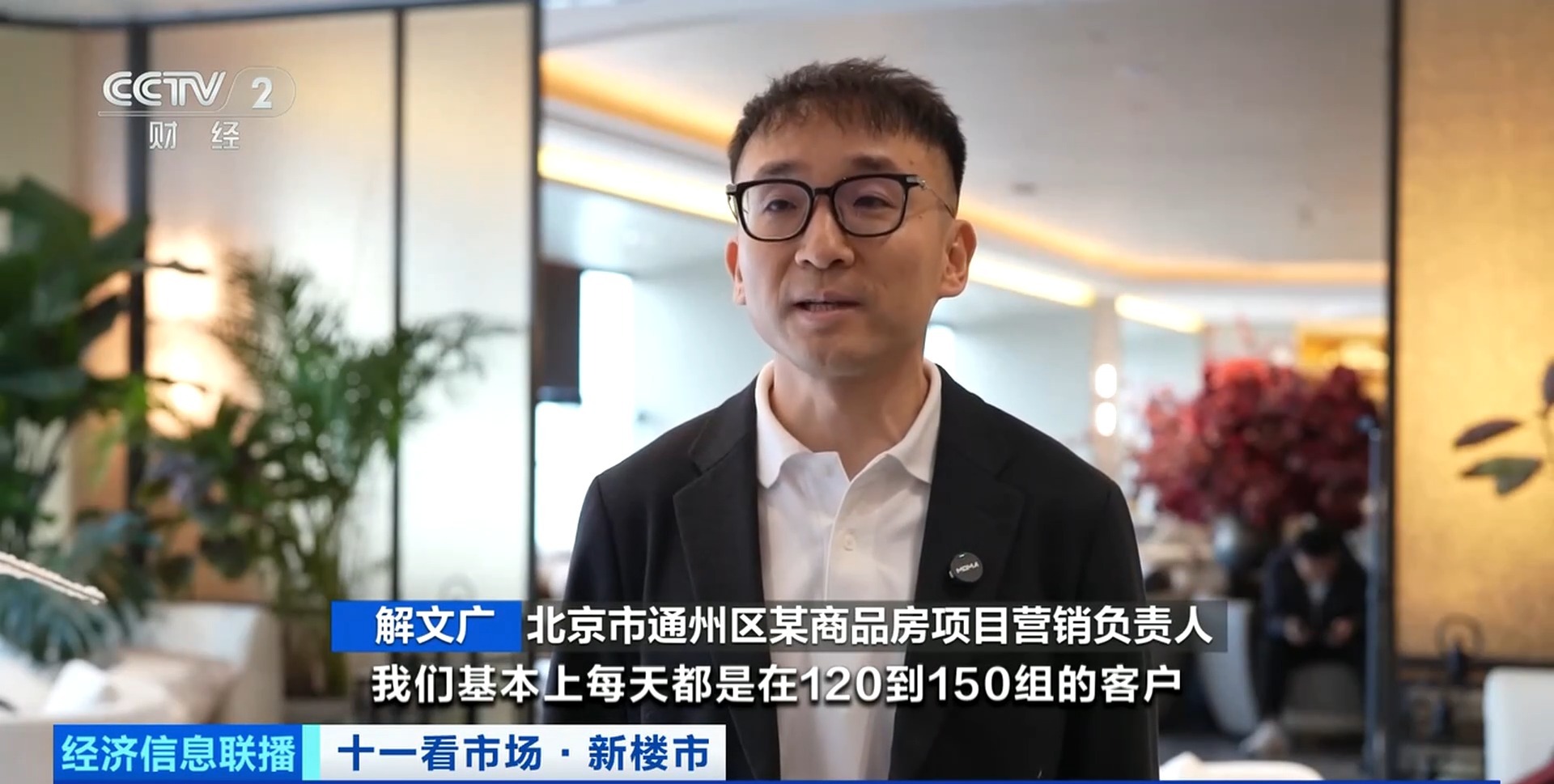 北京市通州区某商品房项目营销负责人解文广:到国庆节,我们基本上每天都是在120到150组的客户。我们的销售转化,每天会在八到十组认购客户之间的成交量。