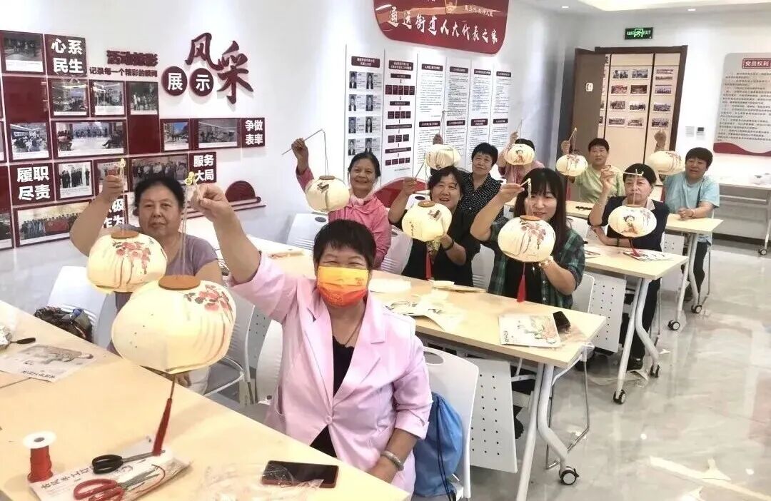 在通运街道,居民们齐聚一堂,参与“月圆京城 情系中华”中秋节手工国风灯笼制作文明实践活动,讲解中秋文化,制作手工灯笼。