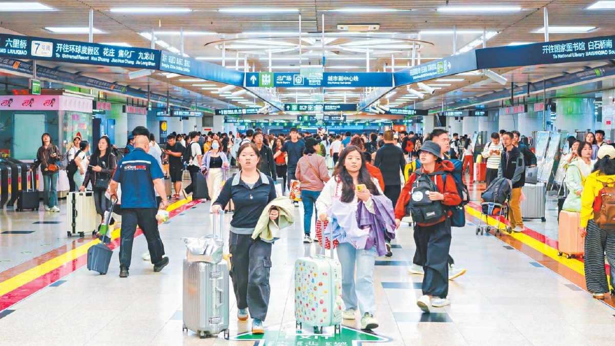 夜幕降临,站区广播不断提醒旅客:地铁7号线延时运营至凌晨两点。郑颖和同事们仍在坚守,协助当晚最后一批返京旅客离站。