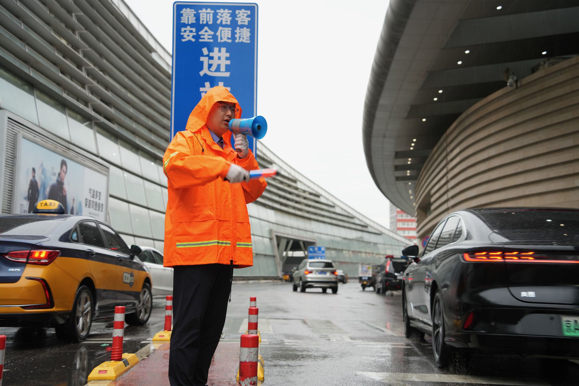 10月8日京津冀地区普降秋雨,不少旅客一出站便遇到雨水,没带雨具一时间进退两难,北京站工作人员在出站口为旅客免费发放一次性雨衣,让旅客可以早些回家。北京站、北京朝阳站开启全部出站通道,青年志愿者也在候车大厅、问讯处、进出站口等场所为旅客指路、解答问询,给旅客提供服务和帮助。