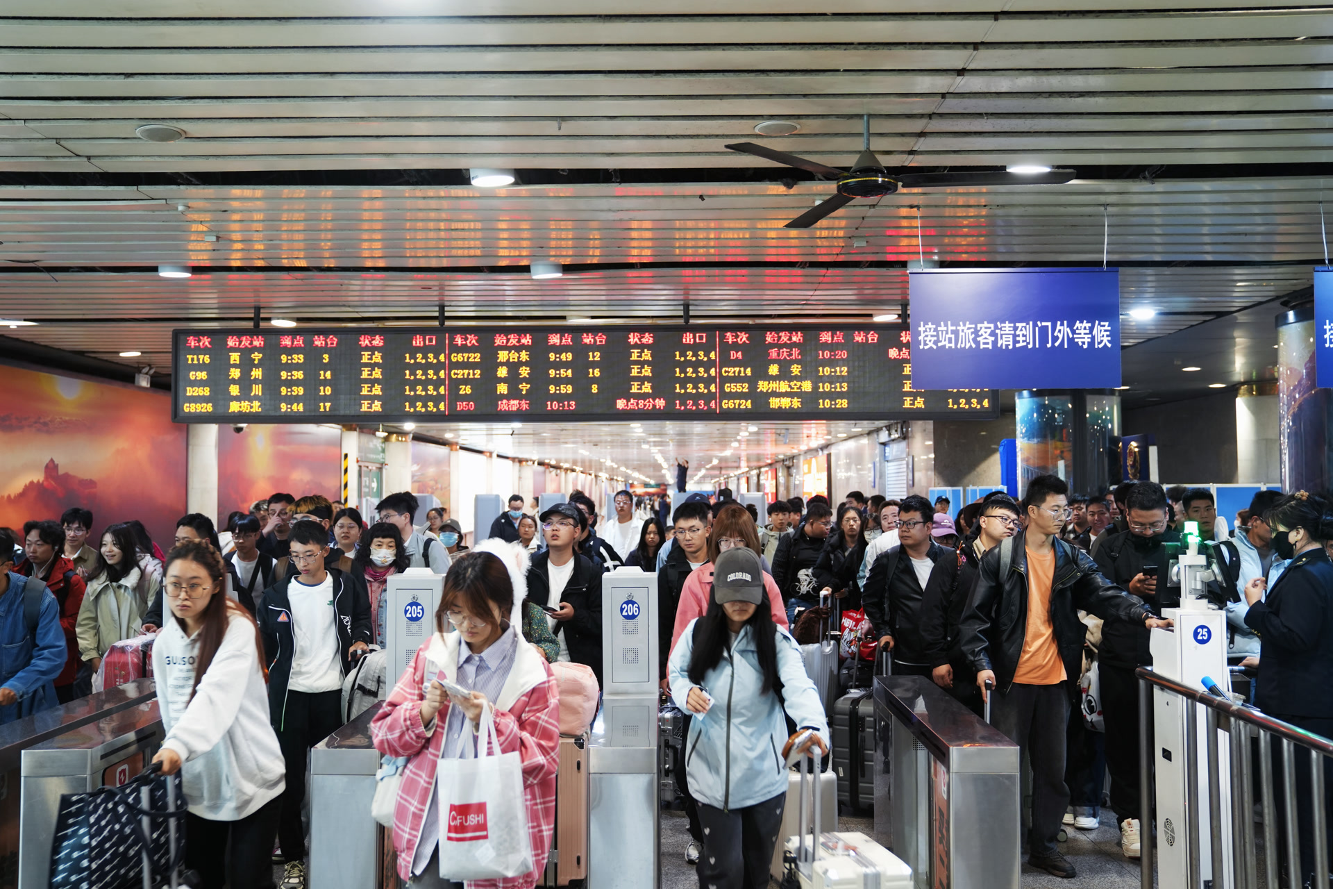 铁路部门提示,铁路客流已进入返程高峰,请旅客朋友及时关注天气变化情况和出行服务信息,预留充足时间进站乘车,严格按规定携带随身物品,按照车票标注的车次、日期、区间、座号有序乘车,做到文明出行,共同维护良好出行环境。