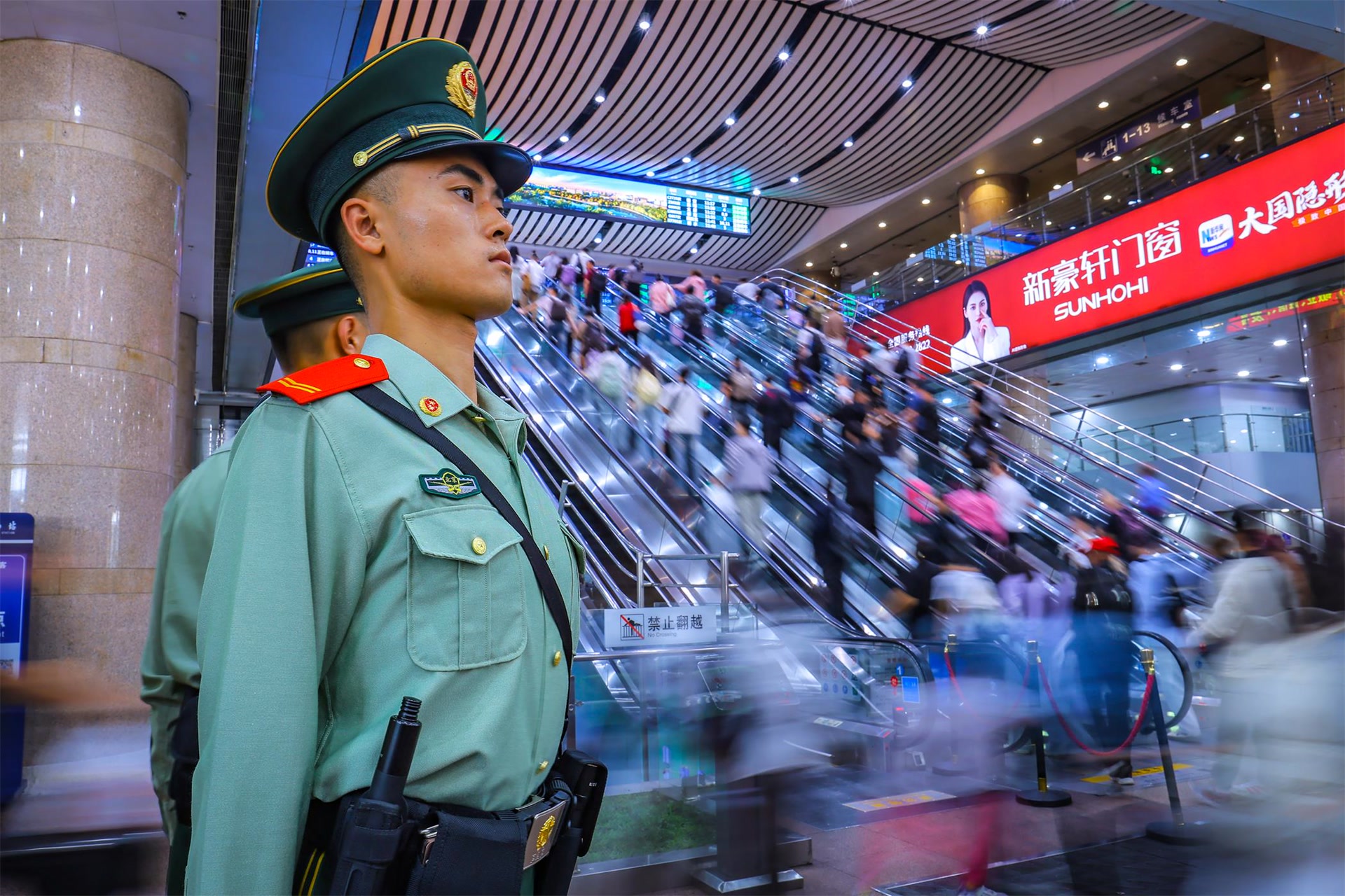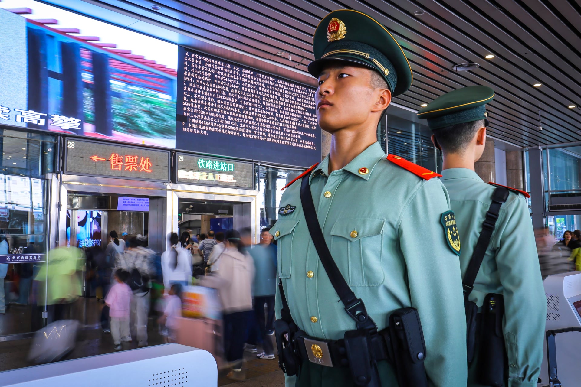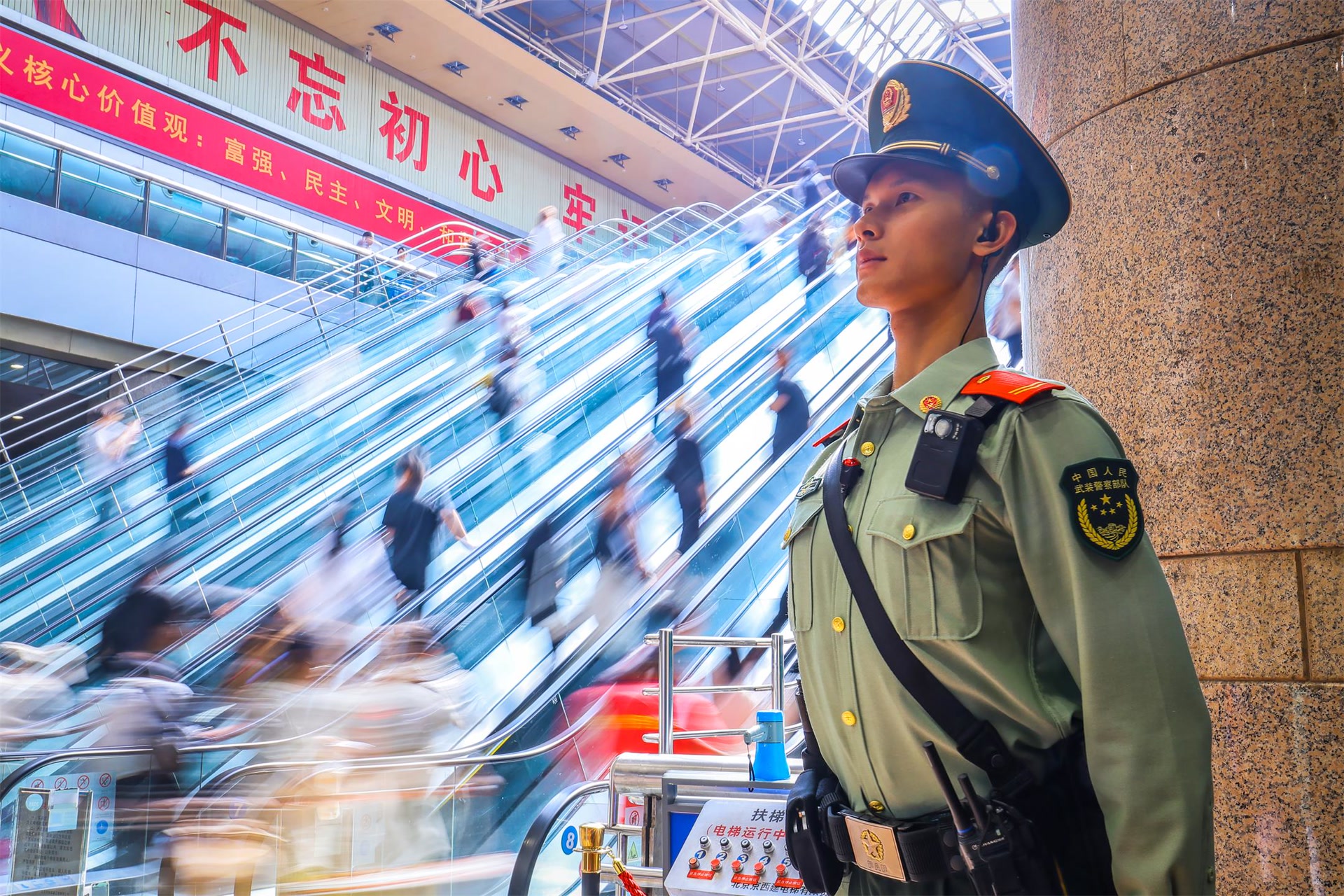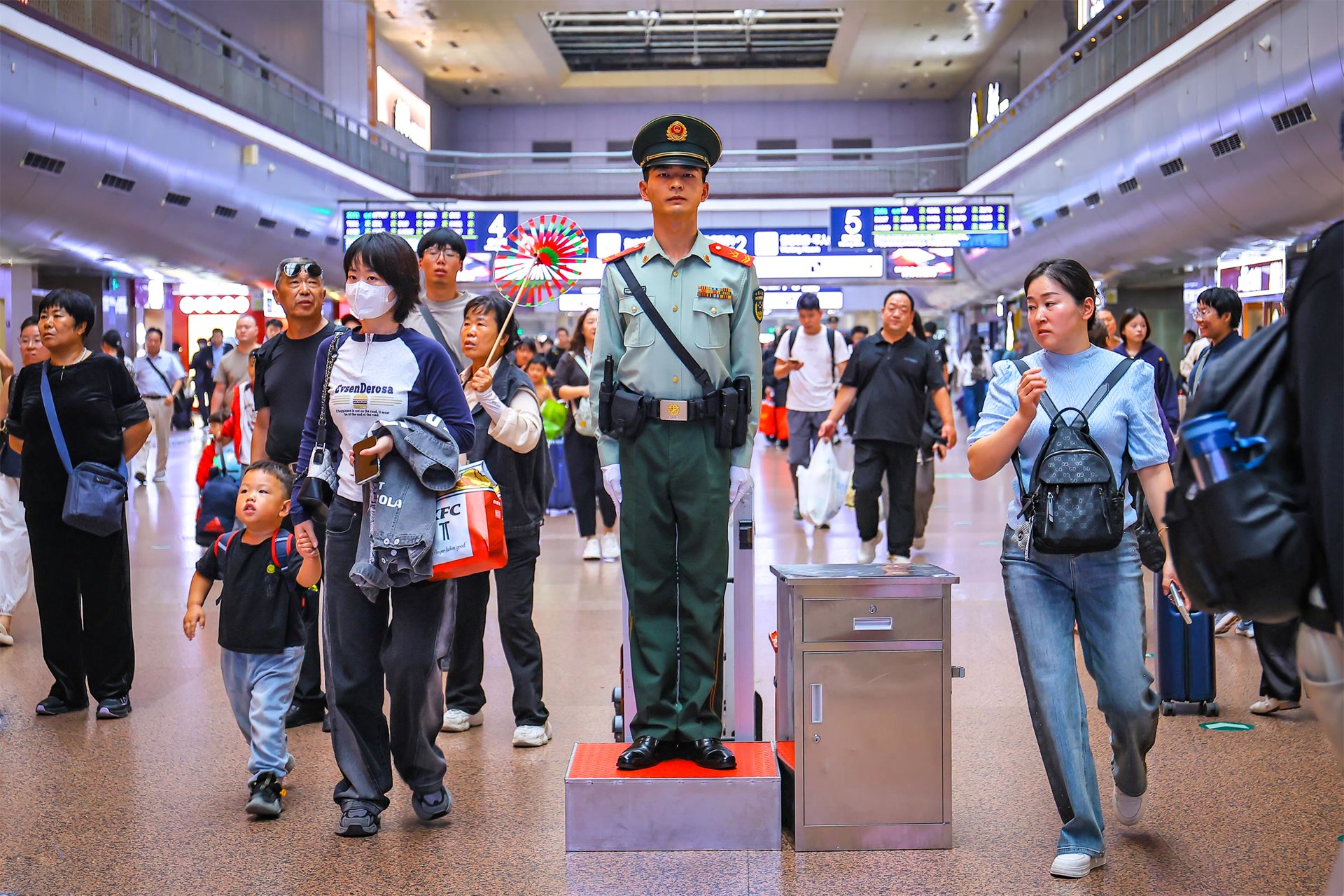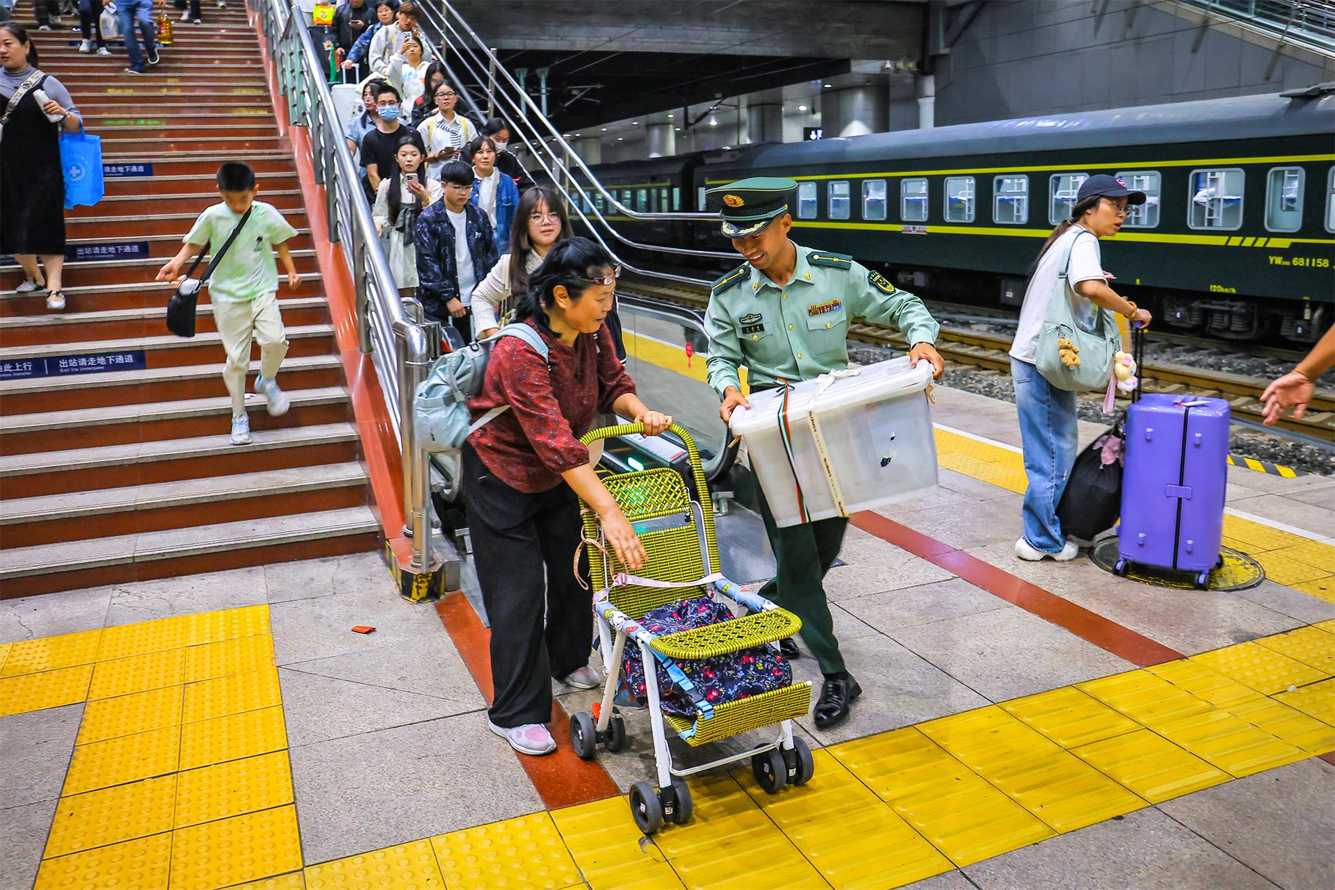 国庆假期最后两天,北京铁路交通枢纽迎来双向返程客流高峰。为保障旅客安全有序出行,武警北京总队执勤第六支队官兵坚守执勤战位,与重点站区管委会、铁路公安等部门搭建联防联控体系,通过实时客流监测系统动态调整勤务部署,在进出站口、安检区、候车大厅等关键点位设置警戒哨,协助维护秩序,热心提供帮助,以实际行动确保旅客平安顺利出行。