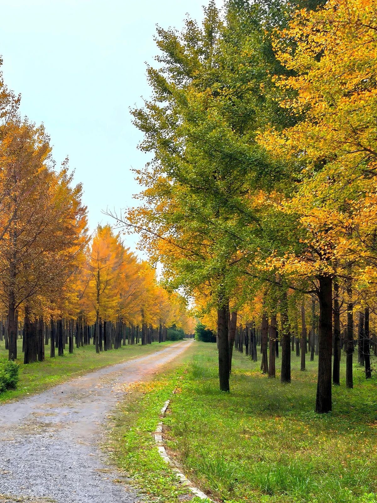 园中部分银杏叶已悄然泛黄