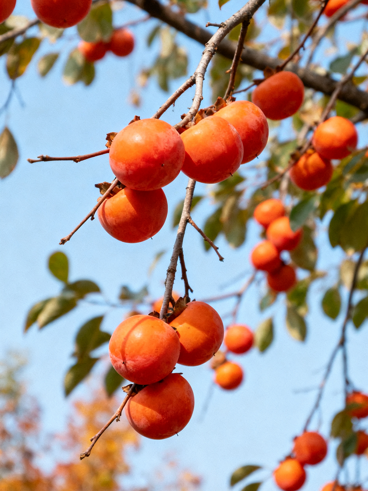 橙红色的柿子挂满枝头