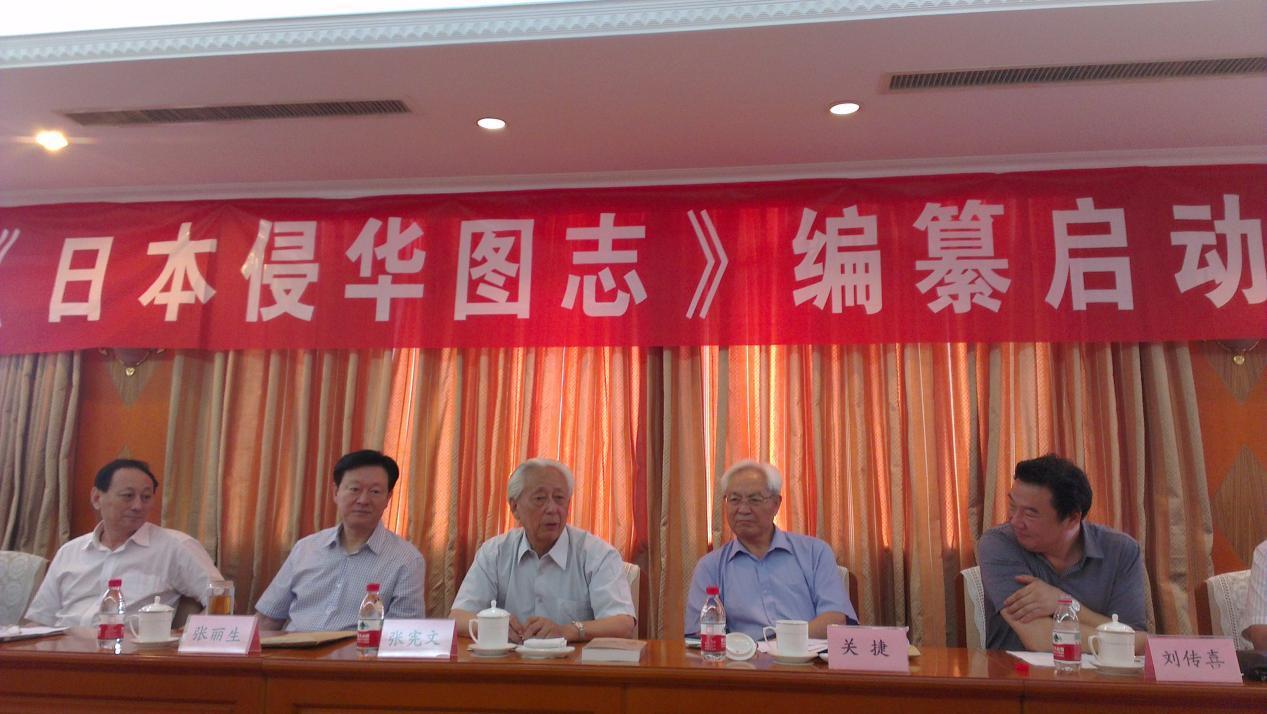 “日本侵华图志”(25卷)选用图片2万余幅,真实反映日本侵华罪行。(张宪文为左三)
