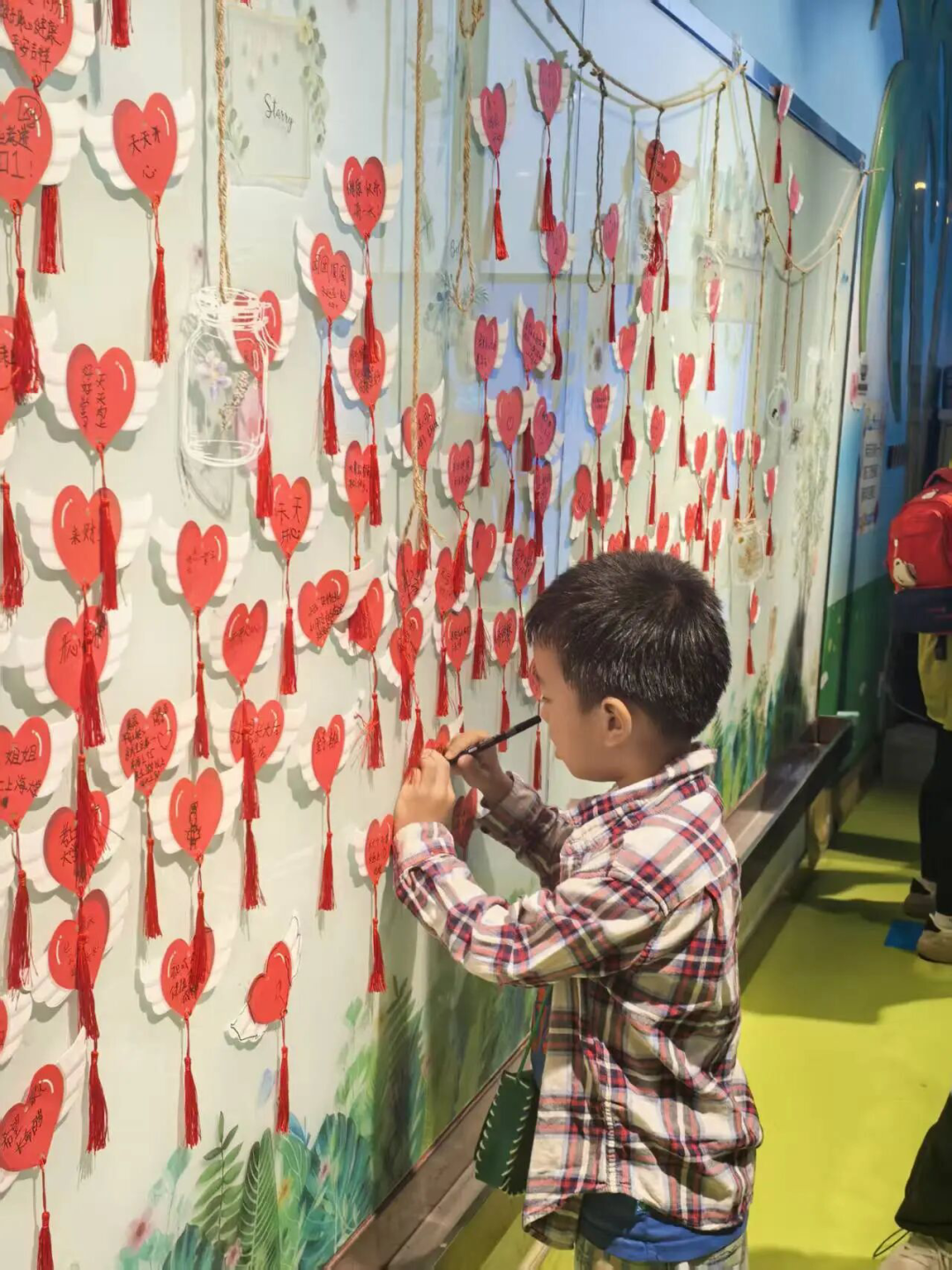 传统文化体验活动同样丰富,巧手夹月饼体验,孩子们握着大木棍筷子尝试夹起“大月饼”,在趣味操作中感受传统节庆习俗;猜灯谜区域挂满红灯笼,“中秋月夜开家宴(打一成语)”“国庆联欢(打一字)” 等谜题,让孩子在解谜中琢磨汉字智慧、体会传统文化的魅力;中秋期间还开设中秋文化小课堂,国学教师通过经典诵读、习俗讲解,带领青少年探寻中秋节的历史渊源与文化内涵。