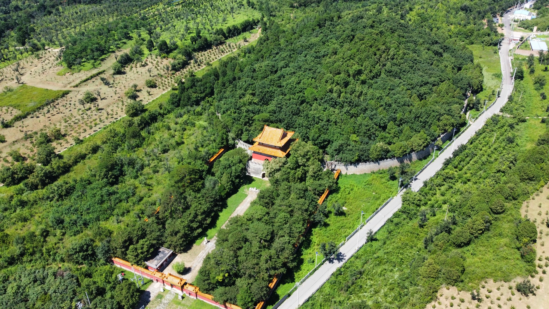 献陵前院向北的区域,如今已经完全沦为一片果园,这里便是遮挡于献陵前后两院之间的“玉案山”,它也是献陵的整体布局中最有特色的一个部分。从献陵的航拍图不难看出,其后半部分即方城、明楼和宝城院落,背倚天寿山,其宝城向北,形成了一连串起起伏伏的小山丘。献陵的两侧,有长陵宝城后的山丘和庆陵宝城后的山丘,两者蜿蜒盘绕在献陵的后院。群山环绕,使得献陵后院处于一个相对封闭的小空间内。当年兴建陵寝的工匠们,在山体的南侧单独修建了献陵的前院,使得献陵的陵宫“一分为二”。