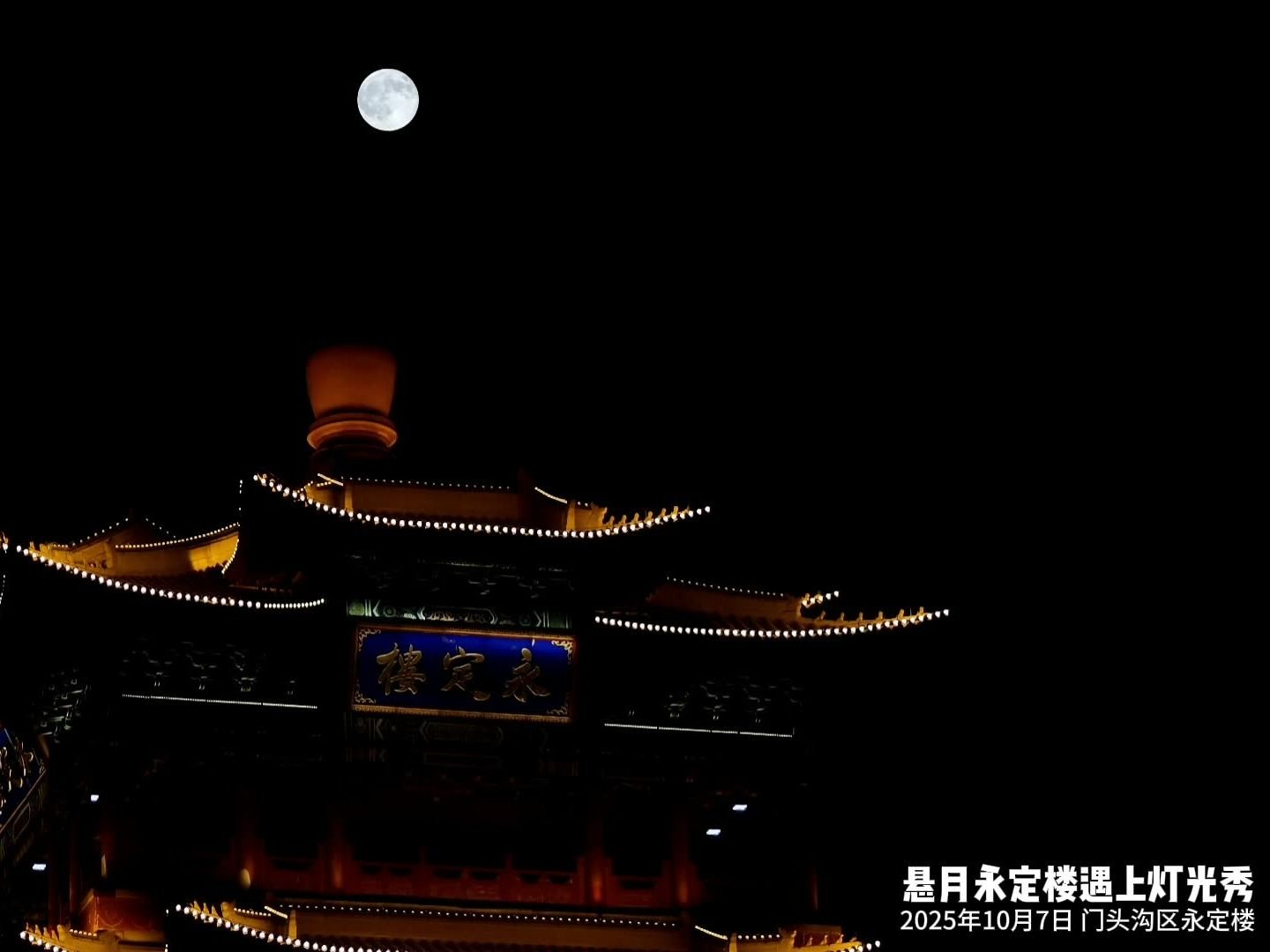 “十五的月亮十六圆”。2025年10月7日晚,一轮圆月“悬挂”在灯光璀璨的永定楼之上。正当人们驻足拍照的时候,永定楼的灯光缓缓熄灭,接踵而至的是绚丽多彩的灯光秀表演,为国庆、中秋的假期增添了色彩,让人们大饱眼福!详情>>