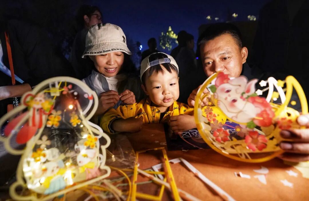 “月亮”打卡点、花灯制作等中秋限定项目也于当日同步开放,游客凭打卡照换取仿制汉代货币“货布”,领取花灯材料包参与手工制作,随后提着花灯沿中轴路夜游,沉浸式体验古人中秋雅趣。