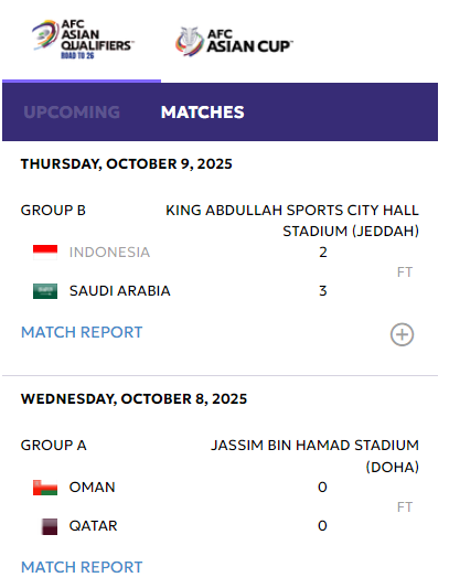 北京时间10月9日凌晨,世预赛亚洲区第四阶段比赛全面开踢。结果,在两次获得点球的情况下,印尼队仍2比3不敌沙特队。此外,在另一场比赛中,卡塔尔队和阿曼队0比0战成平局。