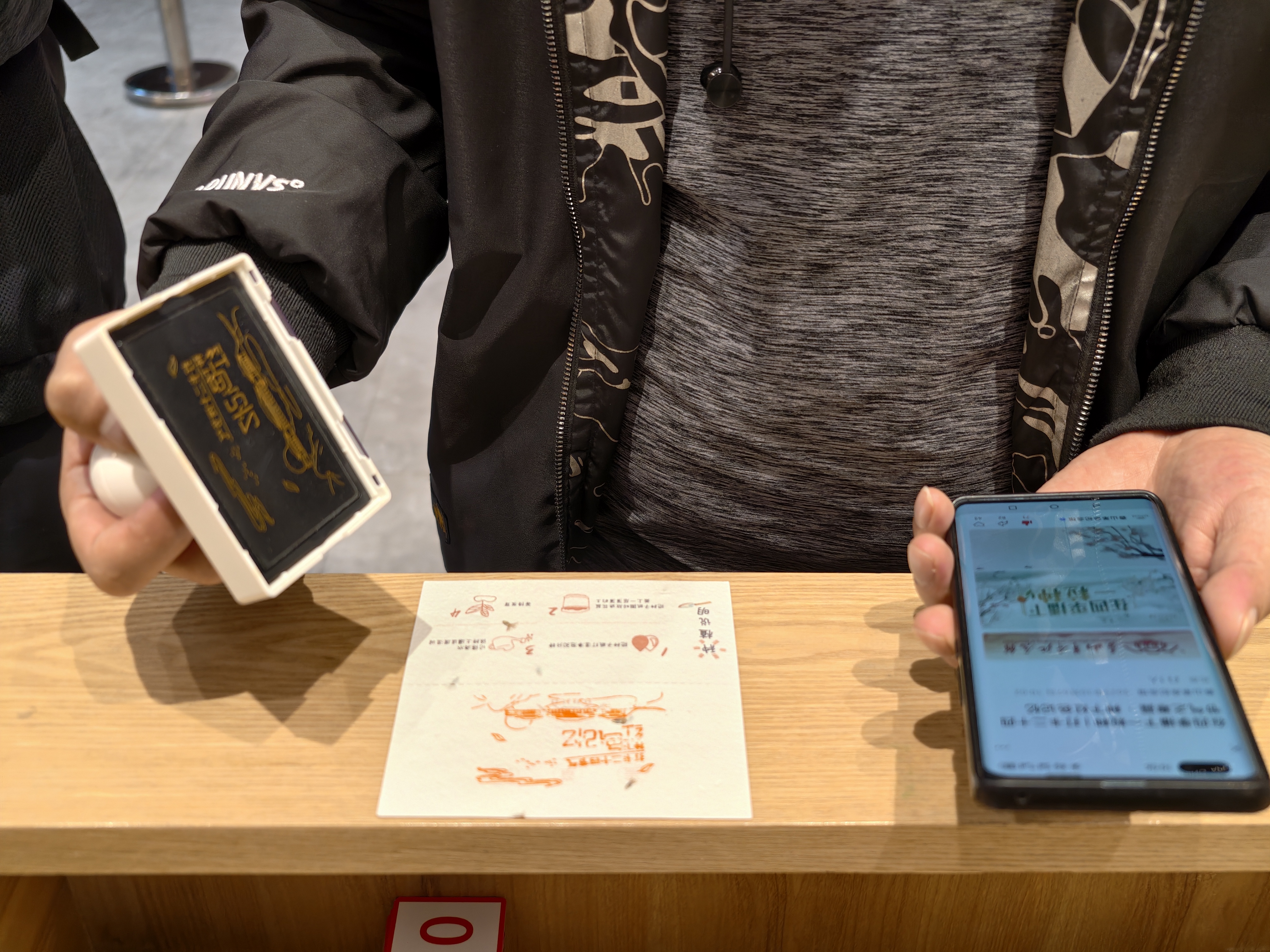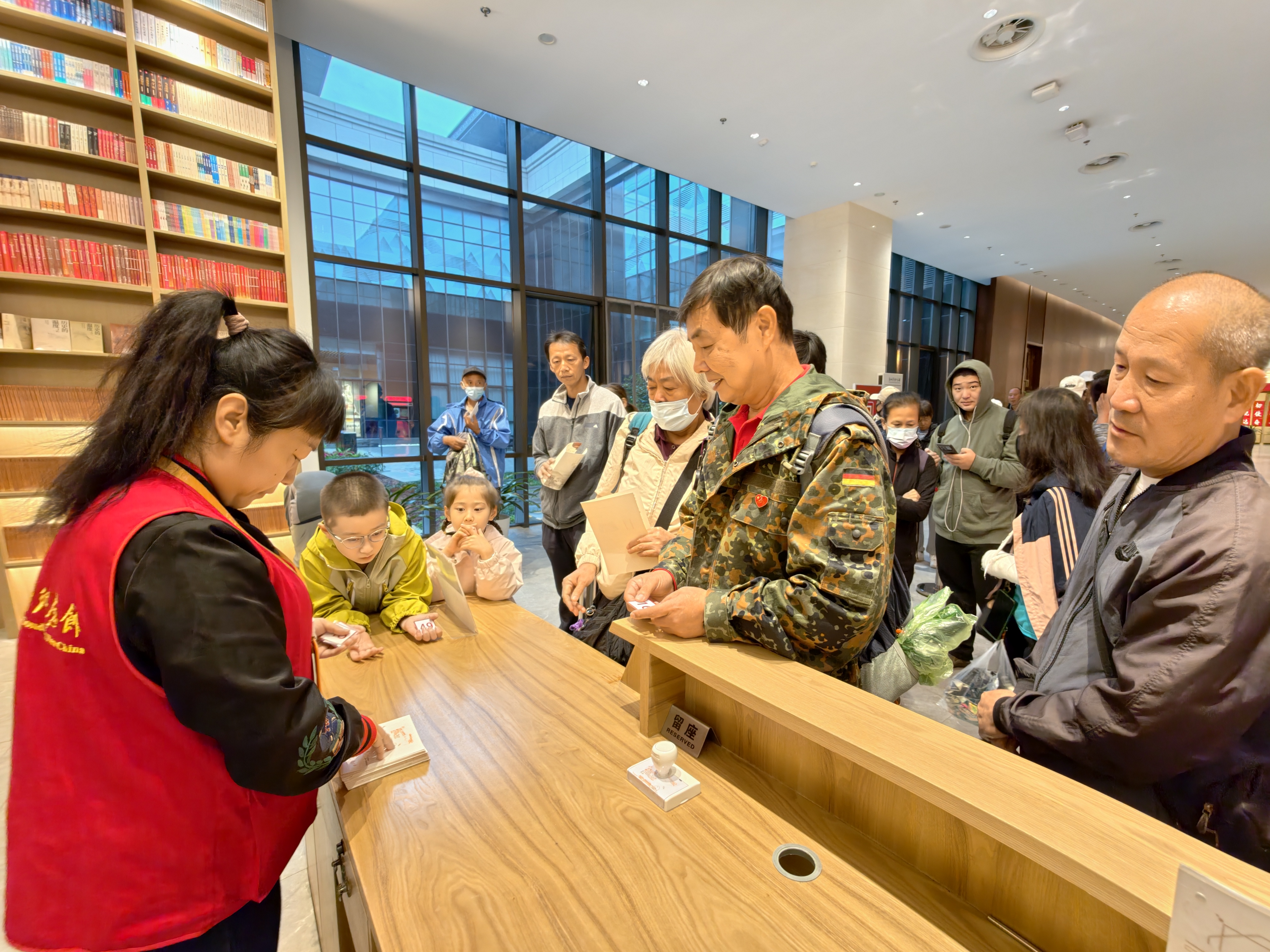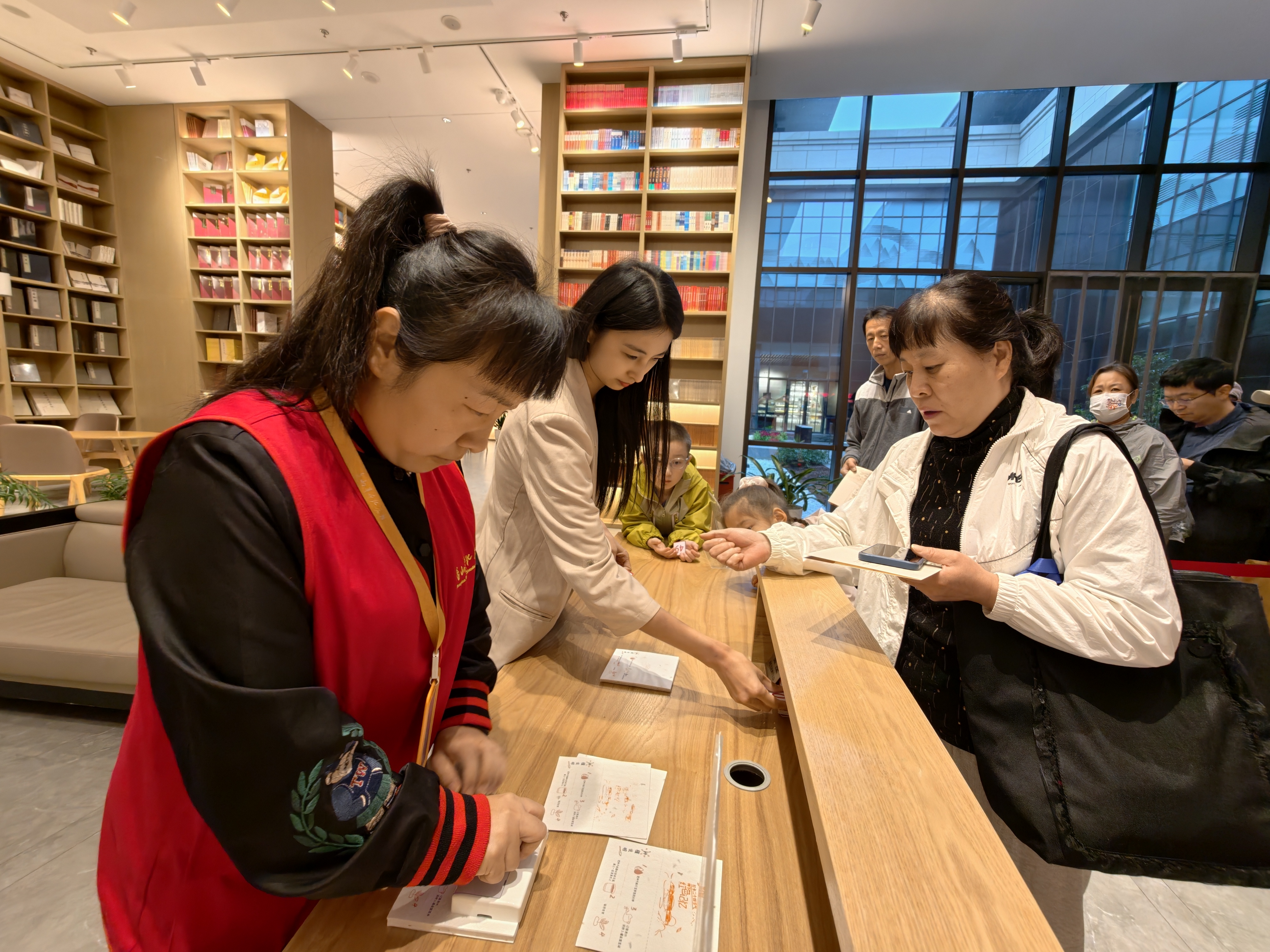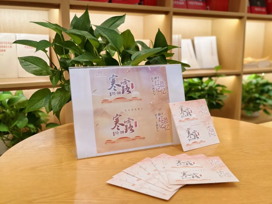 10月8日上午,香山馆在一层“赶考书吧”处精心布置“节气卡”领取与盖章区,工作人员热情地向观众递上“寒露”主题节气卡片,在观众携带的集章册、笔记本上加盖秋季专属印章。这一刻,观众一同将寒露时节的美好瞬间完美定格,共同留存这份独属于传统节气给予的温暖记忆与时光意义。