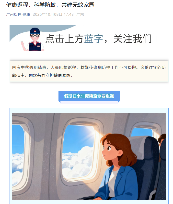 广州疾控也在8日下午发布提示,假期归来要重视健康监测: