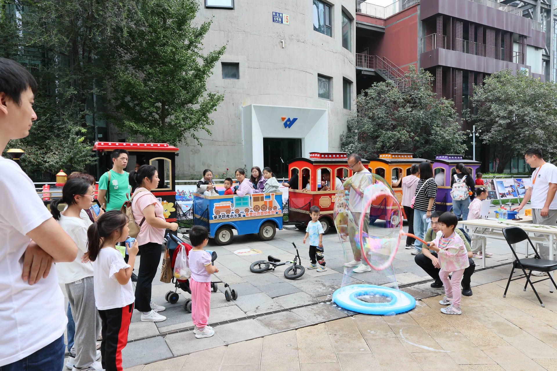 首钢冬奥广场于节前首次对公众开放,10月1日至5日,这里成为孩子们的乐园,一场亲子嘉年华活动吸引亲子家庭前来体验。活动现场,游客纷纷与“双奥”火炬合照感受荣耀时刻,小火车游园、非遗陶瓷手作、人形机器人足球赛等项目人气爆棚。