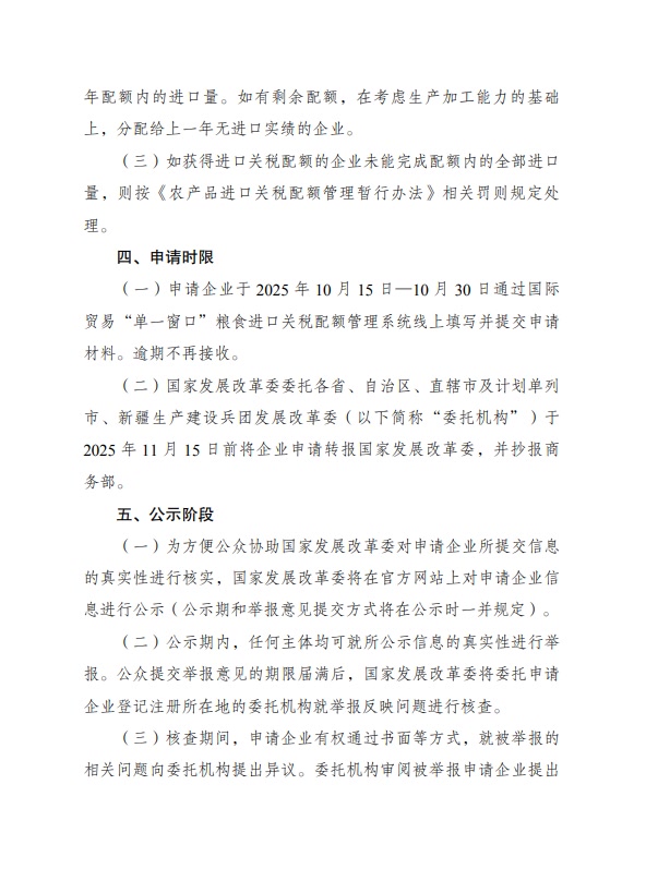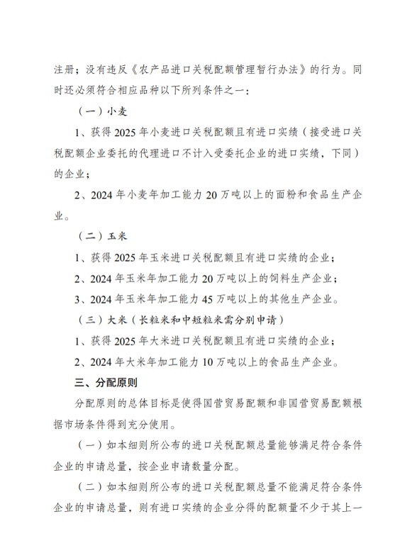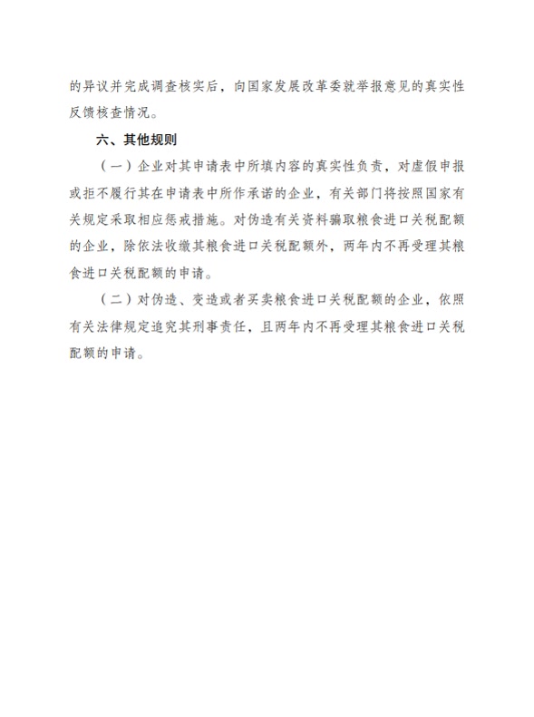 国家发改委发布2026年粮食进口关税配额申请和安排细则