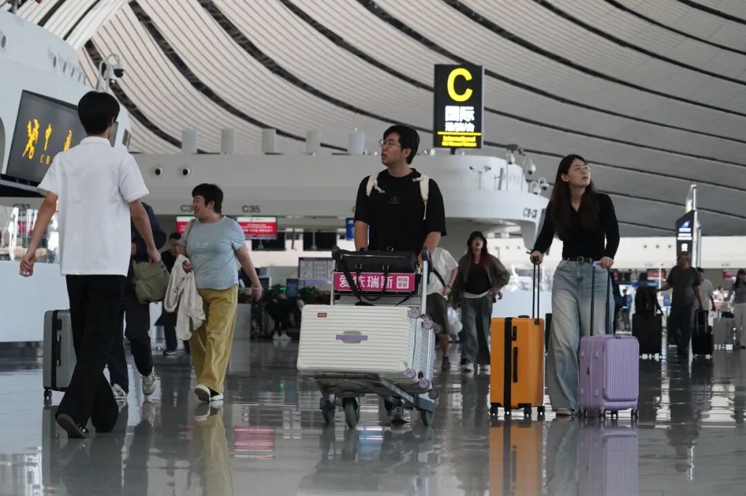 国庆假期(10月1日-10月8日)期间,大兴机场累计保障航班7925架次,迎送旅客130.15万人次,日均航班量约991架次,日均旅客量约16.27万人次,较去年同期分别增长4.62%和5.57%。高峰日为10月1日和10月7日,当日分别保障航班1013架次和1008架次,旅客吞吐量均为16.68万人次。