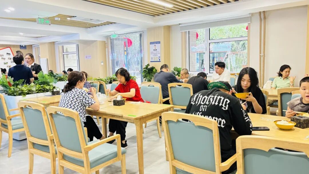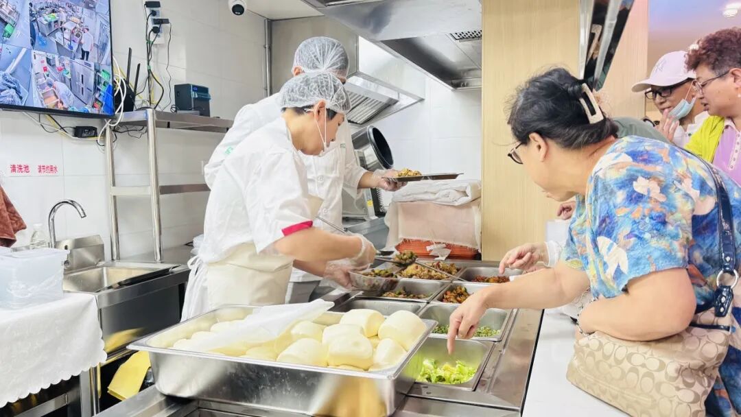 此外,食堂的适老化设计细致入微:圆角餐桌防磕碰,桌面预留抓握空隙,墙面安装扶手,地面做防滑处理……这些贴心设计让老人倍感安心。“在这里吃饭不仅方便,更重要的是安全。”78岁的张奶奶表示。