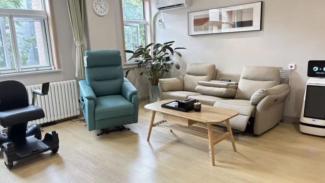 与此同时,二层的“银龄”科技体验坊也迎来体验高峰。老人们在这个空间里,体验AI面诊机器人、助起沙发等各类智能养老设备带来的便利。
