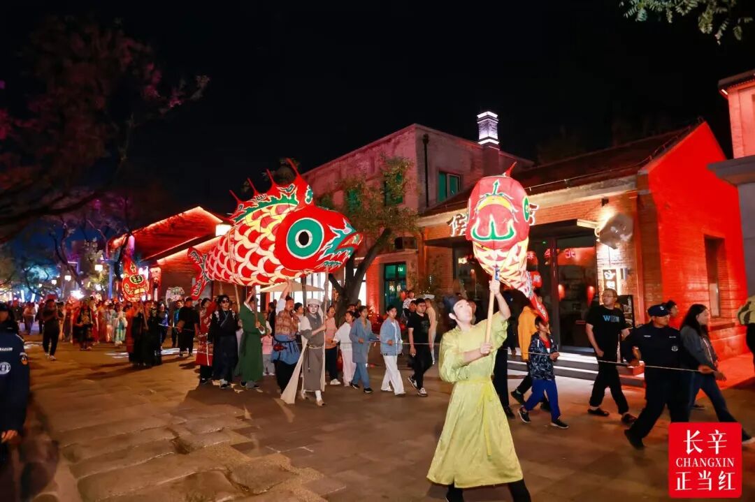 长辛店国潮时尚街区以“长辛正当红”为主题,推出了持续8天的文化狂欢,客流量约20万人次。活动期间,推出民乐演奏、红歌演唱、汉服巡游等100场演出,以及活字印刷体验、中医把脉问诊、投壶射箭游戏等30余种互动,还有红色文化展区、月下市集、月下养生茶局等10大主题场景轮番登场,让游客们沉浸式体验传统与现代的碰撞。