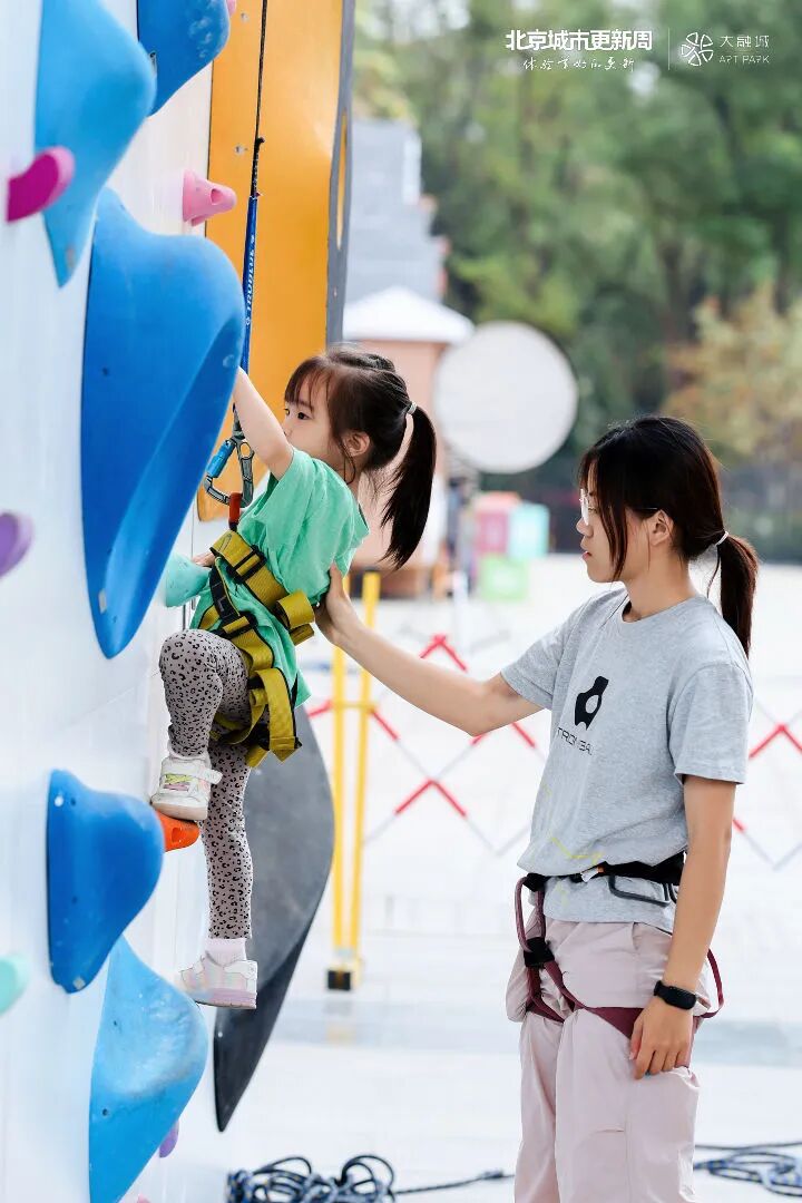 与此同时,中关村大融城则通过“北京城市更新周”推出了更具参与性的体育项目——户外攀岩体验。商场外立面设置的21米高攀岩墙,以16条专业赛道的规模,创造了北京室外城市攀岩的新高度,成为黄金周期间备受瞩目的“打卡地标”。