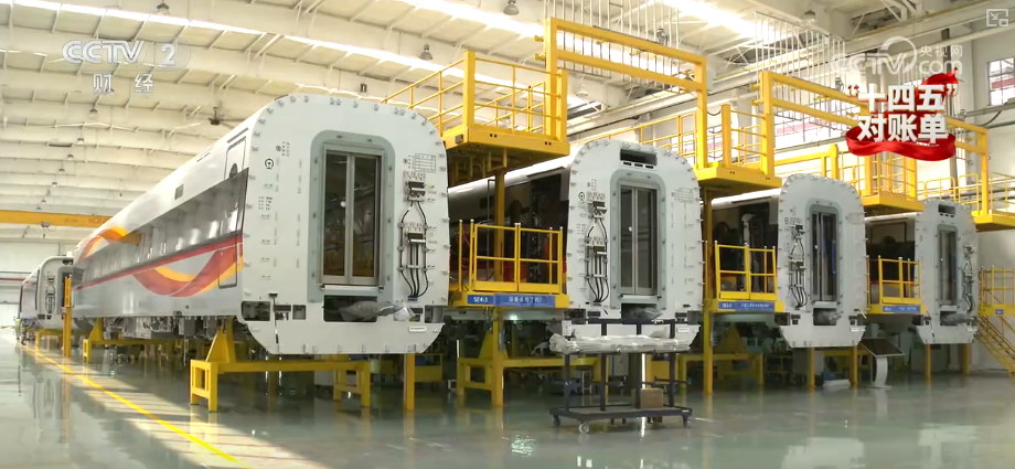 中车四方股份公司工艺专家徐锋介绍,相比“十三五”末,现在生产效率提升20%、人员减少30%,整个生产周期缩短5天。他们能够交付更高质量的中国高铁。