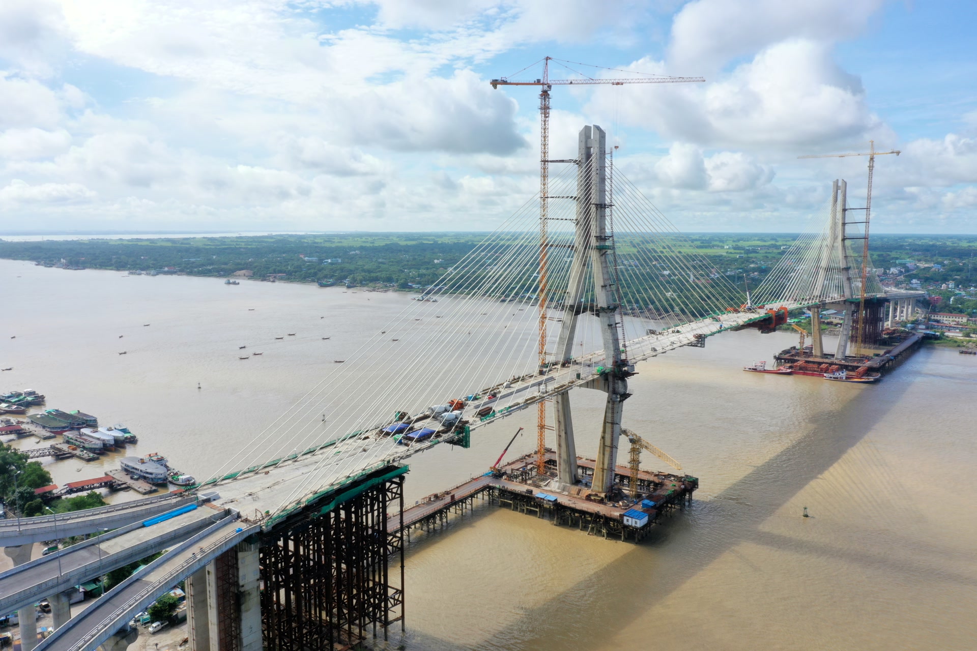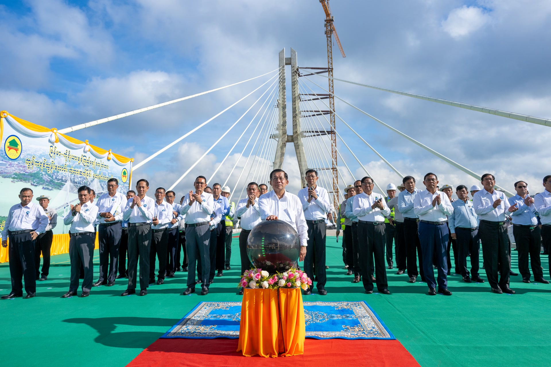 由中国土木承建的缅甸达拉大桥主桥段项目10日举行合龙仪式。缅甸代总统、国家安全与和平稳定委员会主席敏昂莱出席活动。