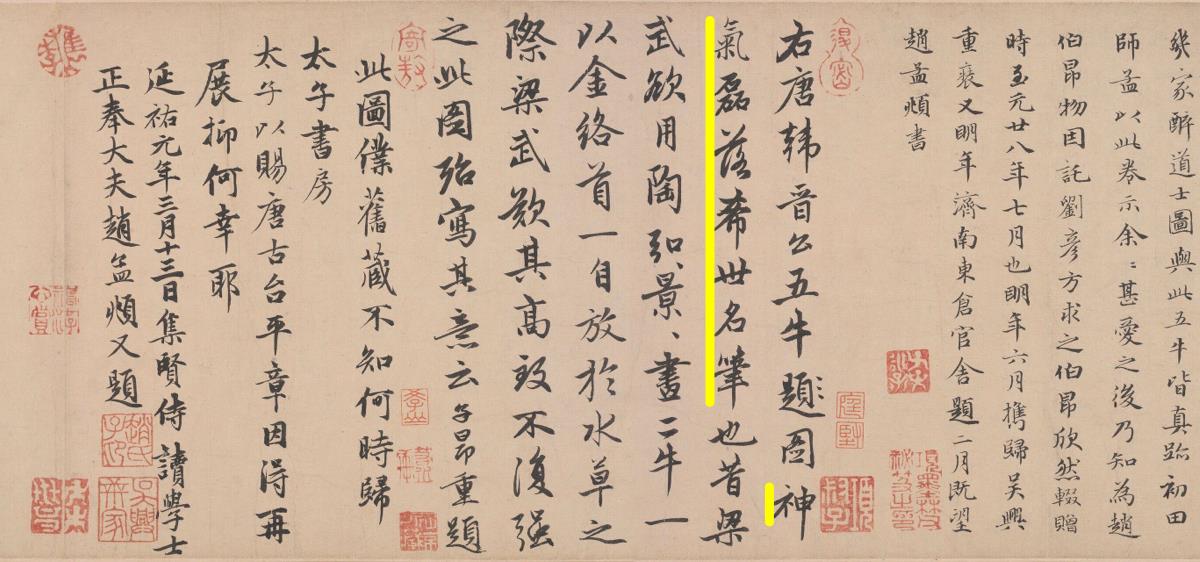 △《五牛图》拖尾赵孟頫三处题跋。