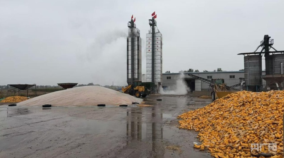 民之天粮食贸易有限公司的烘干塔持续运转中。(央广网发 李民 摄)