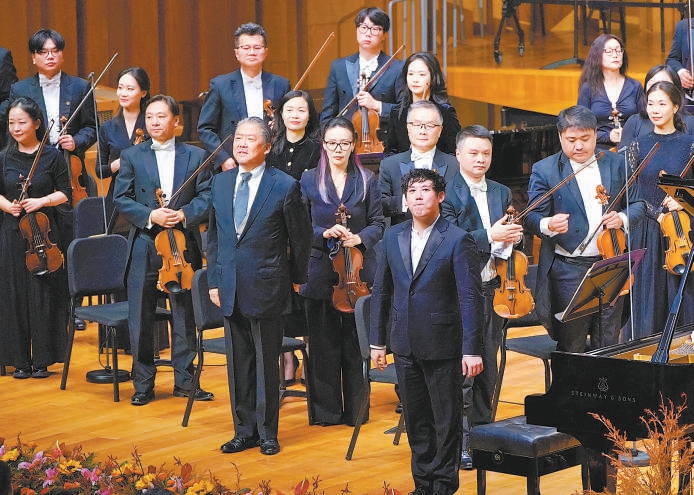 柴科夫斯基《第一钢琴协奏曲》是惊人技巧与深邃抒情深度融合的巅峰之作,历来被视作协奏曲曲目的重要基石。乐曲开始,沿着宏伟的引子,张昊辰在琴键上留下清晰而深沉的音响。他在快速乐段中始终保持出色的控制力,炫技的华彩部分既要准确完成高难度技巧,同时也注重音乐线条的流畅与和声色彩的变化。经过第二乐章的内敛深远、第三乐章的热烈活力,钢琴与乐团默契合作,协力把音乐推向辉煌灿烂的结尾。紧扣俄罗斯音乐的曲目设计,音乐会下半场转入肖斯塔科维奇对人类坚韧精神的深刻描摹。2025年是这位传奇作曲家逝世50周年,余隆引领乐团奏响肖斯塔科维奇《第五交响曲》饱含的悲怆与胜利,结构严谨、内涵丰富的演绎,献上了中国音乐家对经典作品的虔诚致敬。