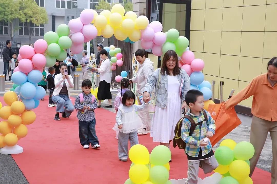 开园当天,幼儿园精心设置了气球门、拍照打卡点等场景,充满童趣的布置让“开园礼”仪式感满满。现场暖意融融,老师们身着整齐服装,以微笑与拥抱迎接萌娃。