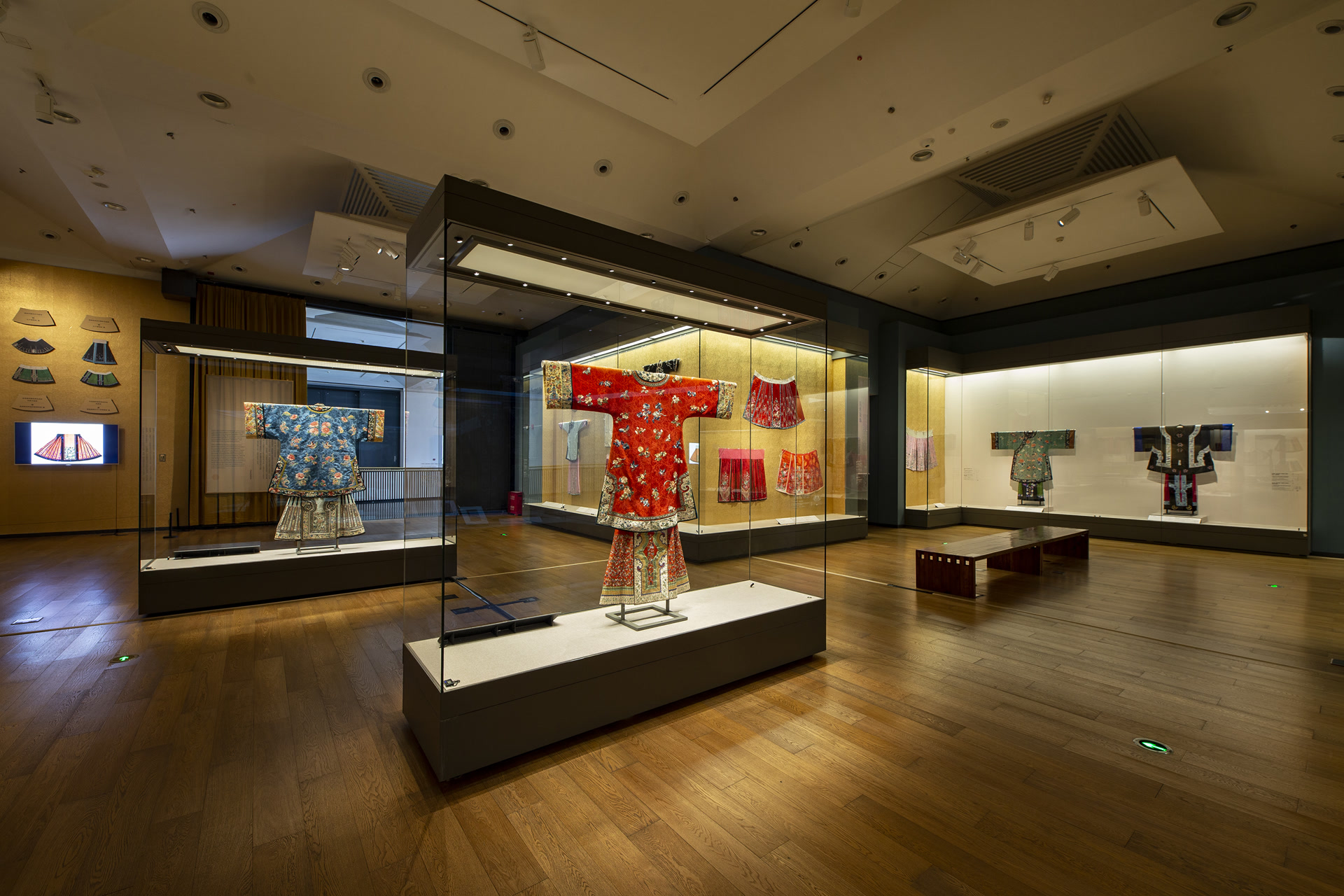 展览依据马面裙的美学演变分为3个单元。“方兴未艾”部分展示了明代马面裙及袍、袄等;“百紫千红”部分展示了清代的阑干、月华、凤尾及百褶鱼鳞裙,辅以袄、褂,马面绣片等,呈现出清代丰富的裙型与华美的装饰;“简雅凝练”部分呈现了马面裙形制及装饰的简化过程。