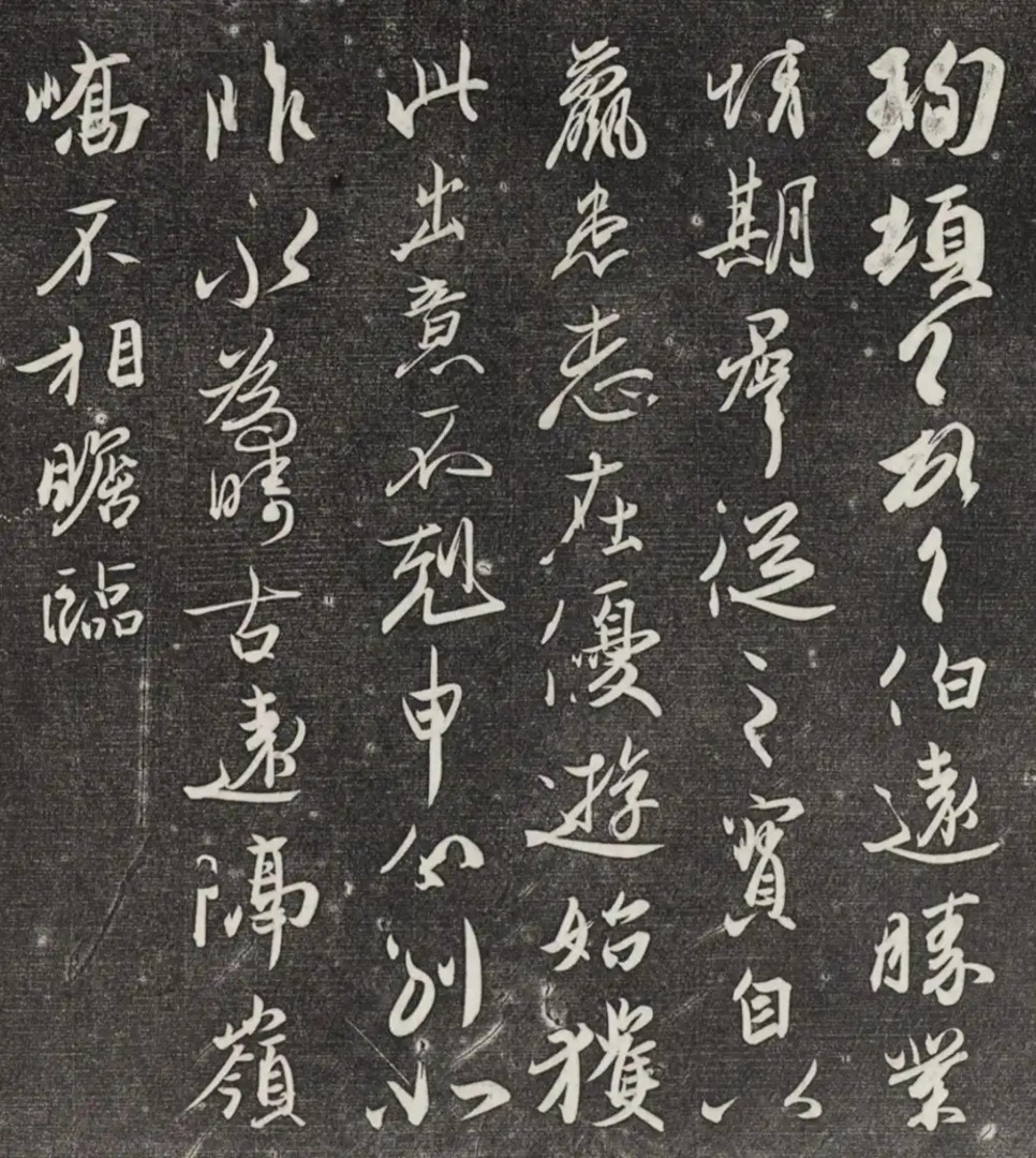 细观其中字的结体、用笔,也透出一种与章法一致的萧散来。从结体上看,此帖最大的特色在于字内疏与密的交替变奏。或左密而右疏,如“珣”“期”“始”等字;或左疏而右密,如“顿”“获”“隔”等字;或中间密而四边疏,如“远”“宝”“意”等字;或部件密而组合疏,如“胜”“昨”“岭”等字;又有“群”“申”等字由主笔伸长造成的上下疏朗,“志”“永”等字由笔画分散造成的整字散开,等等。这种疏与密的变奏,在整体微向右上倾斜的字势中,形成一种错落的动感,如群鹤游天,又似静水当风,在动与静的和谐中,包藏着无尽的韵致。从字的大形上看,帖中字大多呈方形,透出一种稳重雍容的气质,偶有“群”“宝”等部件上下排布的字,呈长方形,带来一丝活泼的气息。从用笔上看,此帖有三处颇可注意:一是中锋、侧锋交替运用,如一行“远”字,走之旁先用侧锋写出粗细对比强烈的弧线,再用中锋拖出平捺,既优美又平正;“袁”部的横、竖、撇、点则中锋、侧锋交替,有玉树临风之态。二是圆转、方折随宜施用,如“从”字右部,六折之间,笔画都呈优美弧形,共同造就一种俊雅的风貌。三是弱化起、收笔的动作,强化行笔的过程。这是此帖用笔最为显著的特色,也是魏晋笔法的典型代表。如“申”“别”二字之长竖、“不”字之上横,笔锋顺势入纸,自然带出笔肚的力量,再提笔出纸,将字的笔力分散扩展于线条的中段,似蜻蜓掠水般轻巧。