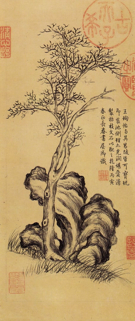 乾隆丙寅(1746)春月,35岁的皇帝弘历获王珣《伯远帖》,欣喜莫名,“遂与《快雪》《中秋》二迹并藏养心殿温室中,颜曰‘三希堂’”。并陆续题曰“江左风华”;“茧纸家风,信堪并美!几余清赏,亦临池一助也”等,又绘枯枝文石图,并跋:“王珣帖与其昌跋皆可宝玩,即装池侧理亦光润堪爱,漫制枯枝文石以配之。”《伯远帖》究竟有什么样的魅力,引得乾隆皇帝一题再题,又绘图以配之呢?深入此帖,细味其书其文其韵,或可知究竟。