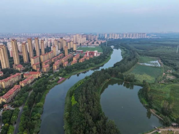 初夏时节,北辰郊野公园内永定新河河畔,掬起一捧清澈的河水,沁凉直击掌面,河道旁绿树繁茂、青草依依,当地的生态景观与历史文化量身打造了这一亲自然公园。