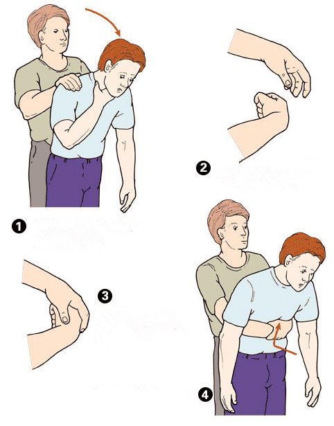 利用冲击腹部-膈肌下软组织,产生的冲击和向上的压力,压迫两肺下部,从而驱使肺部残留空气形成一股带有冲击力的气流把异物冲出气道,使人获救。