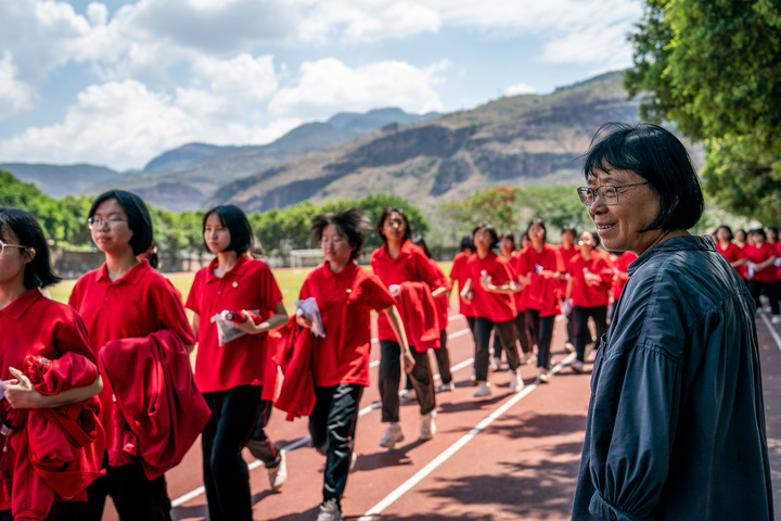 2024年6月7日,张桂梅组织走出考场的学生准备返回学校。新华社记者 胡超 摄