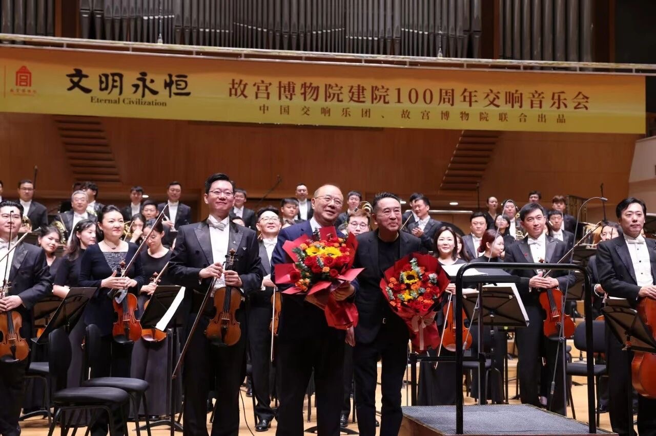 厚重饱满的朗诵如一把钥匙,在交响与故宫、音乐与民族的联结中开启了时光的门扉,华光璀璨,气象万千。10月11日,中国交响乐团与故宫博物院联合出品的“文明永恒——故宫博物院建院100周年交响音乐会”在北京音乐厅上演,中国交响乐团携手著名指挥家胡咏言,完成了作曲家唐建平两部作品的世界首演。弦乐之灵动、铜管之厚重、木管之细腻、声乐之婉转……这一晚,交响乐的恢弘语言,为中华文明的传承留下生动注脚。