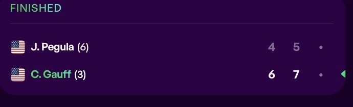 比赛首盘,高芙在4比1领先的情况下被追到4比4,但还是以6比4拿下首盘。第二盘,高芙破掉了佩古拉的发球胜盘局,以7比5带走胜利,夺得本站赛事冠军。
