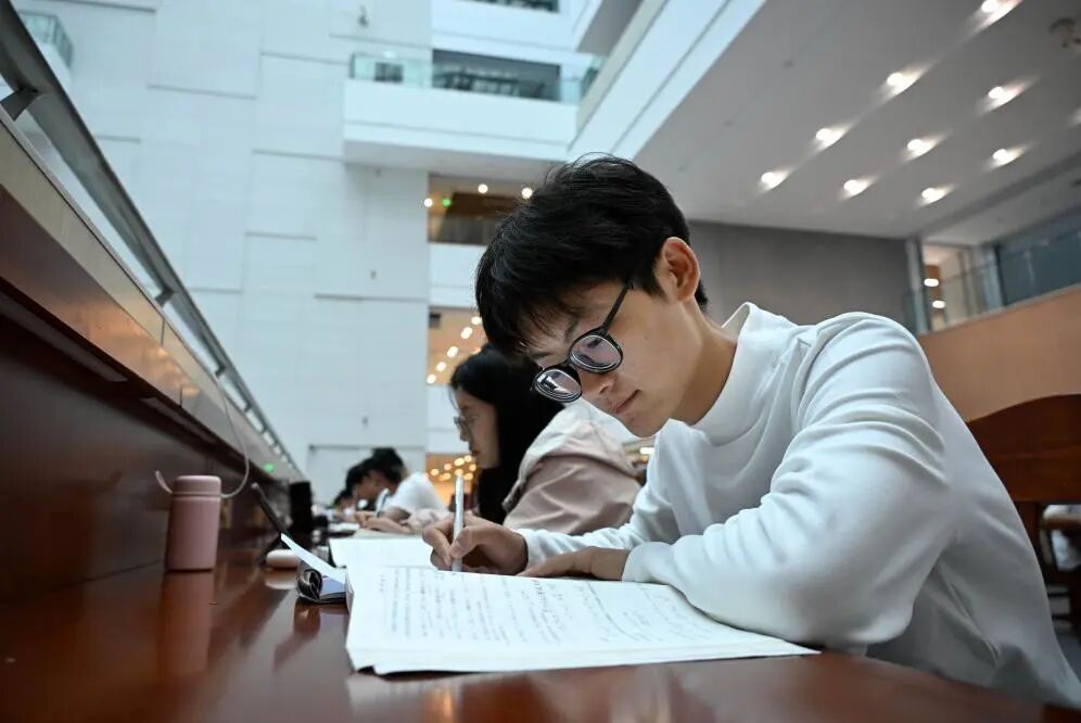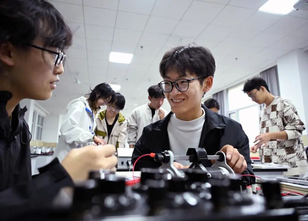 10月11日,孟成(前右)在青岛农业大学教室里和同学交流。