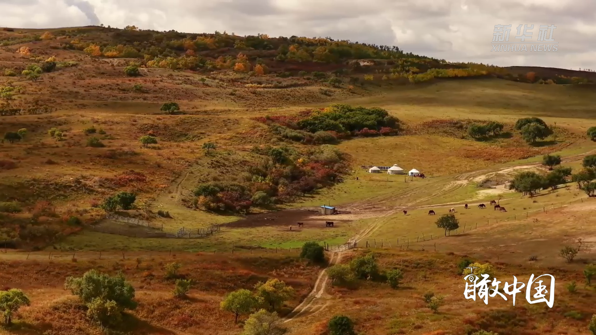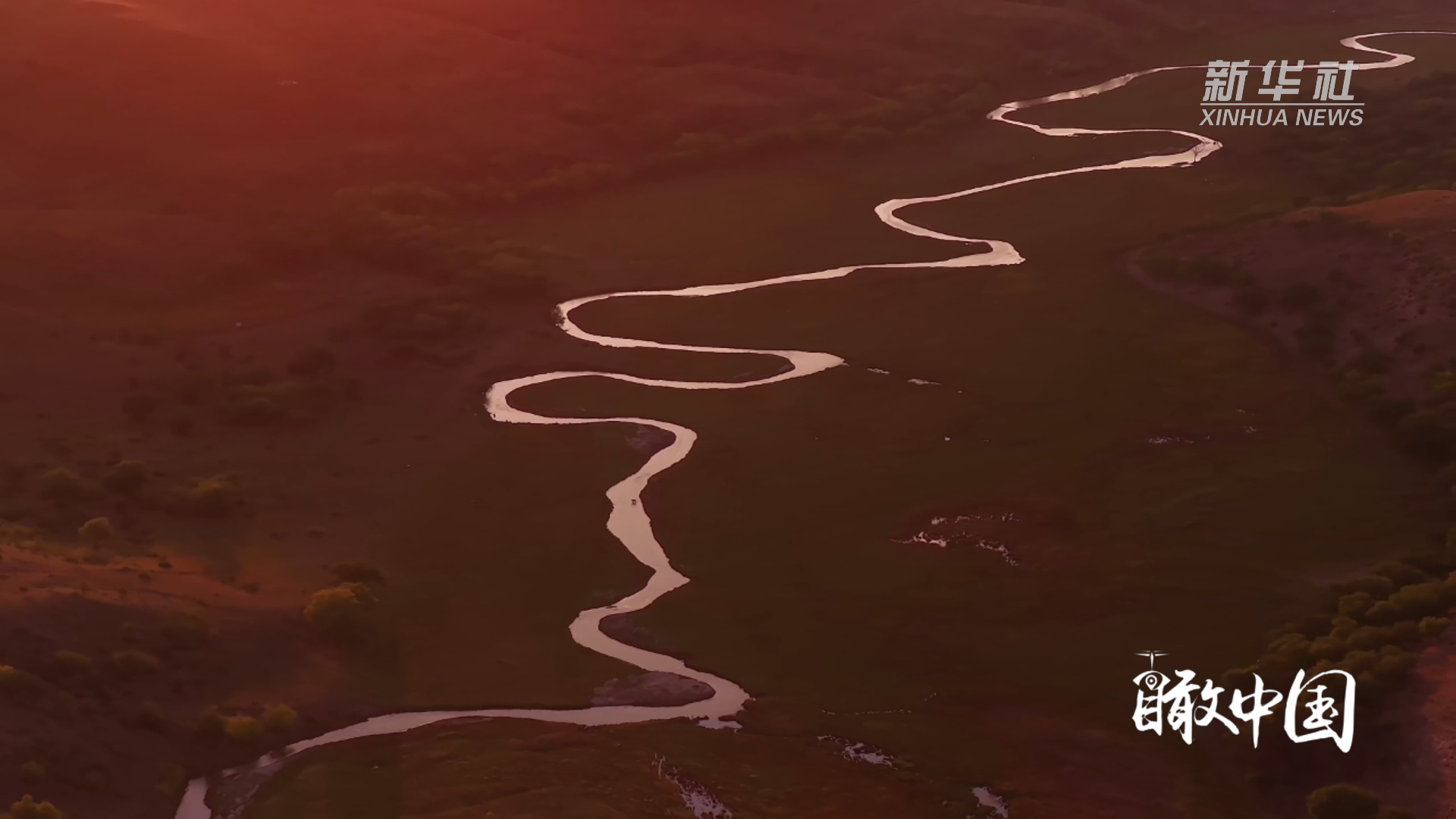 草原深处的牧民之家静立其间,马群在丘陵上奔腾,牛群、羊群在暖阳下悠闲食草,待收的草垛像“瑞士卷”般铺满原野。锡林河蜿蜒流淌,水波映着秋光,南归候鸟或掠水而过,或翱翔天际。浑善达克沙地与斑斓秋景相映,落日为旷野镀上暖红,霞光漫洒间,尽显北疆草原的生机与壮阔。