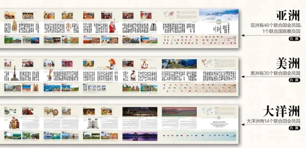形而下:通过“数字印刷+传统工艺”的技术赋能与联合国“文明对话国际日”结合,为全球提供超越意识形态分歧、讲究“各美其美,美美与共”的交流平台与传播载体。借助现代技术和国际交往的文化创新,《文明长卷Ⅰ》为不同国家和地区的人们提供了一个平等、开放的文明交流对话空间和促进民心相通的传播载体。