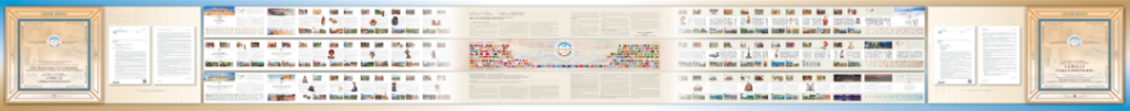 上部/下部:展示世界各国文明标识,呈现“全人类共同价值”的丰富多样性。通过展示各国丰富多样的文明标识性成果,体现了世界文明的多元性,每个国家的文明标识都是其独特历史和文化的结晶,它们共同构成了人类文明的宝库。