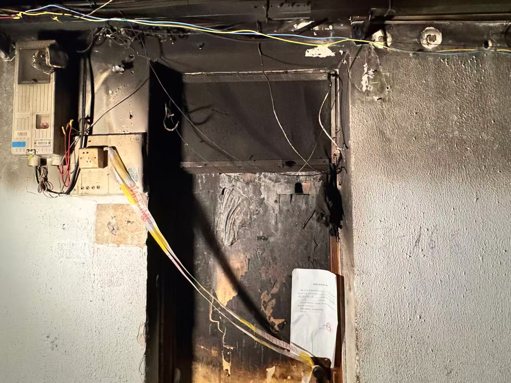 10月11日,记者来到事发楼层,楼道内仍残留着很重的烟熏痕迹及气味,过火的房门一片漆黑,火灾事故现场仍处于封闭状态。目前,火灾原因正在进一步调查中。