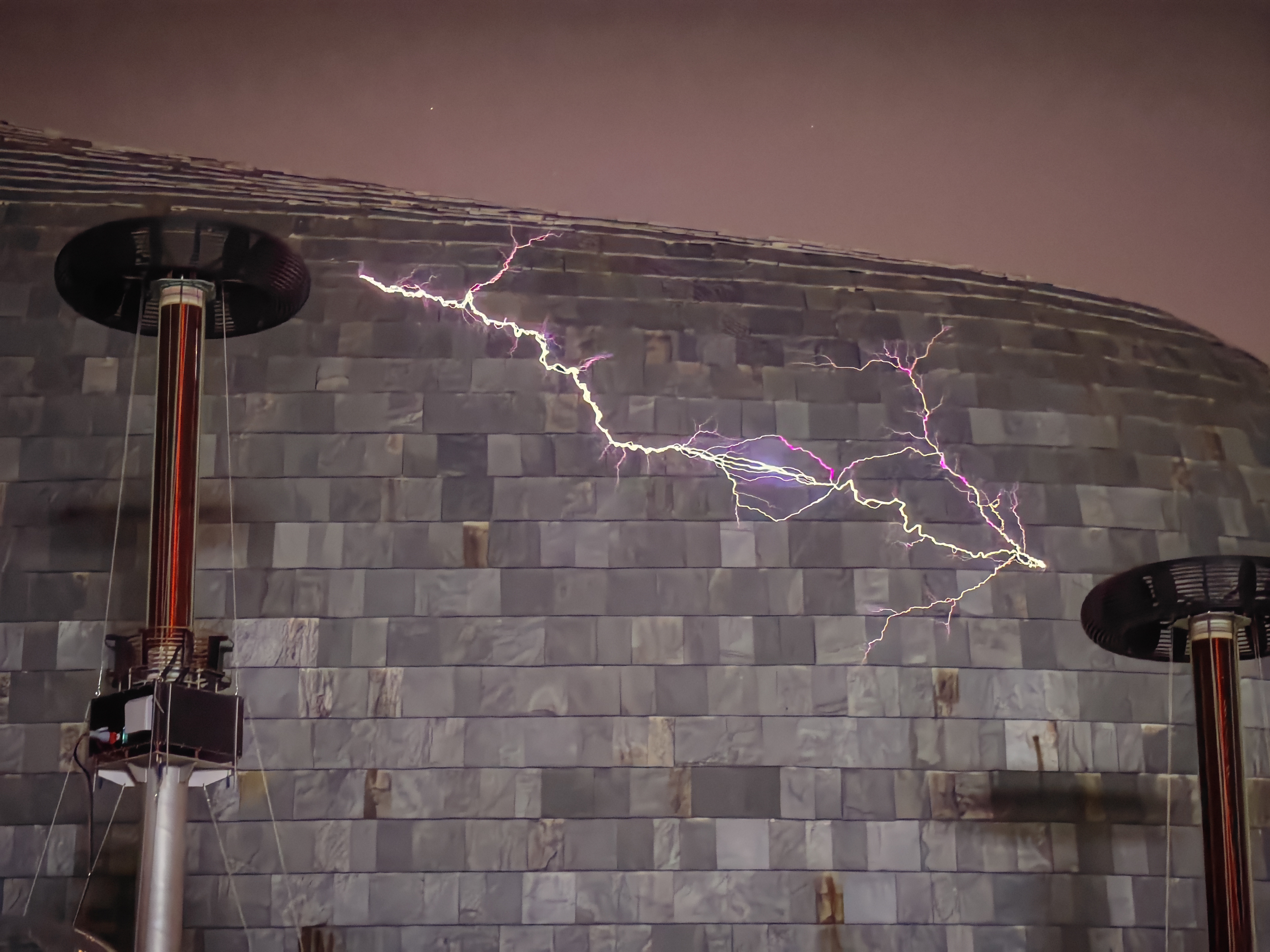 长达十余米的人造闪电,划破中央美术学院美术馆前的夜空,在电子音乐的烘托下,科学与艺术展现出全新的融合状态。10月13日,“聚变电音——能源艺术电子音乐会”在全球最大的特斯拉线圈前奏响。