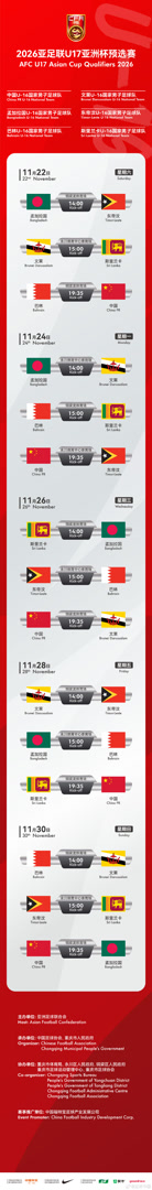 11月26日19:35 U17国足 vs 文莱 重庆铜梁龙体育场
