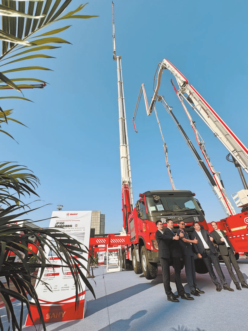 “这是全球首款五桥百米级举高喷射消防车,最大喷射高度可达150米以上!是一款高度更高、流量更大、机动灵活的消防车,能有效解决超高层住宅、商业综合体、石化装置等高层建筑火灾。”在三一重工展区,工作人员向记者介绍一款型号为JP100的消防车。