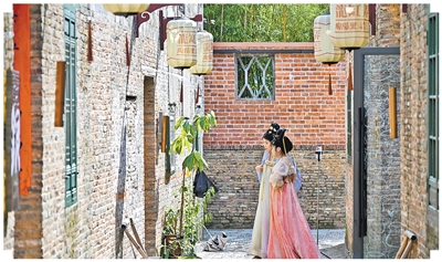 江西景德镇,游客在陶阳里历史文化街区游览。 新华社记者 刘金海摄